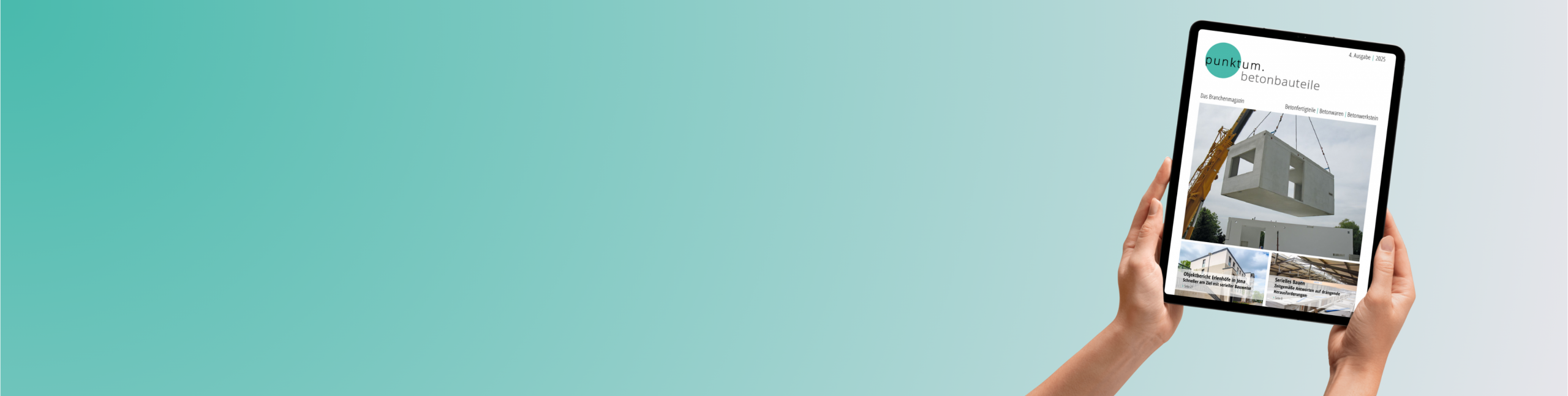 punktum.betonbauteile ist seit 2015 das Branchenmagazin der Verbände und Fachvereinigungen der deutschen Betonfertigteilindustrie. Im Jahr 2024 kam der österreichische Betonfertigteilverband als Mitherausgeber hinzu. Mit dieser Verbindung hat sich die punktum.betonbauteile zu einem gemeinsamen starken Kommunikationsmedium für die Betonfertigteilindustrie im deutschsprachigen Raum entwickelt.